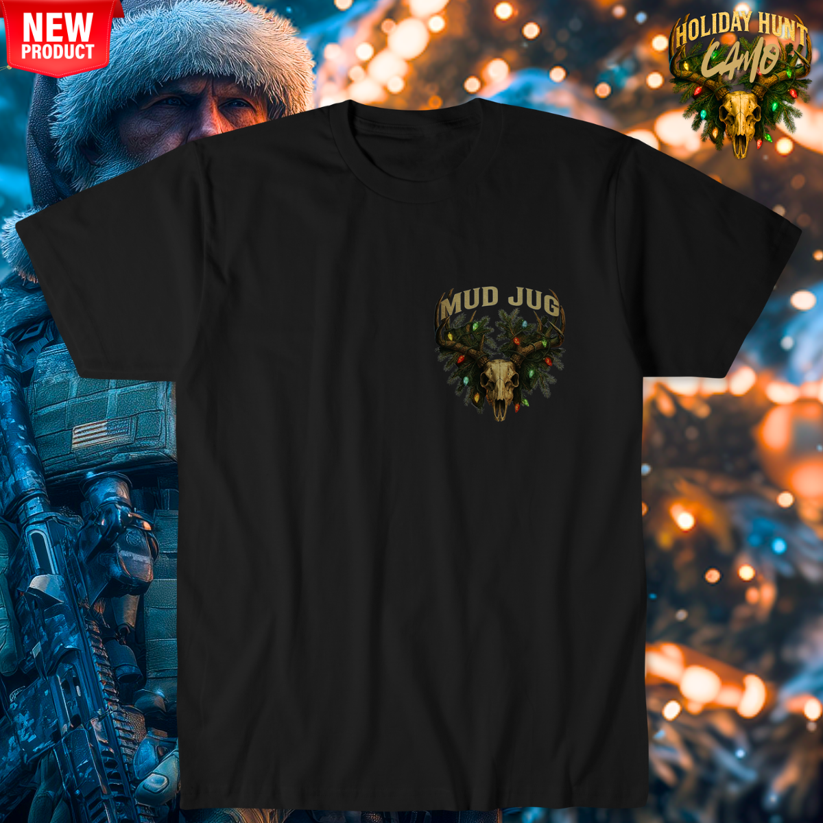 The Mud Jug© Holiday Hunt Camo T-Shirt is a 4.3 oz 60% cotton/ 40% polyester tee shirt proudly offered by Mud Jug©