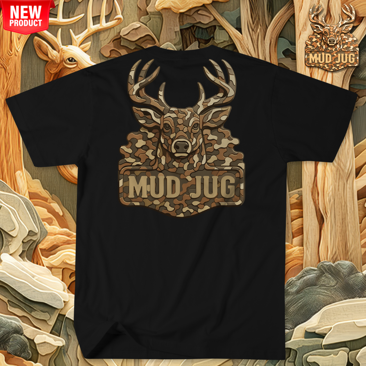 The Mud Jug© Carved Camo T-Shirt is a 4.3 oz 60% cotton/ 40% polyester tee shirt proudly offered by Mud Jug©